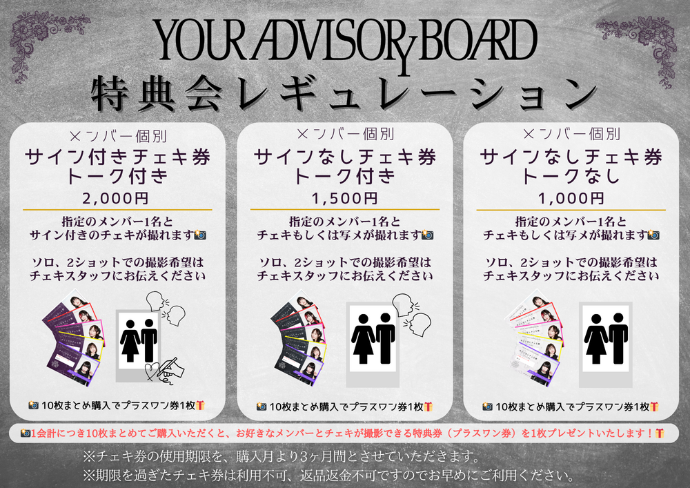チェキ券のレギュレーションを以下のように変更させていただきます。