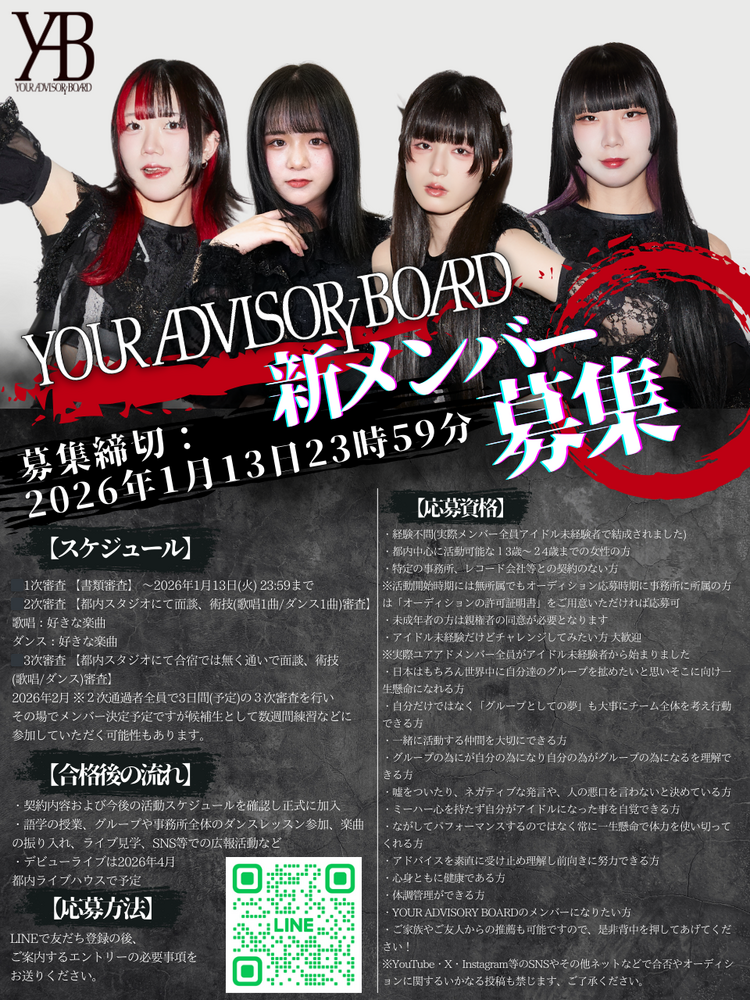 七篠ふゆむ、音喜多うた、藍沢ふうか、咲舞すえかの4人体制となった新生YOUR ADVISORY BOARD を今後ともよろしくお願いいたします!